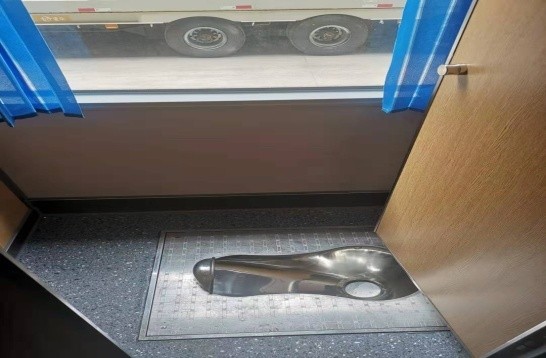 行李仓内设置分体式粪箱,总容积不小于1.85立方米。材质为SUS304不锈钢,厚度不小于2mm,并配置加强筋。粪箱底部排污阀为4”不锈钢球阀,需要时可通过软管接入化粪池或地下储粪箱排除粪便。 |